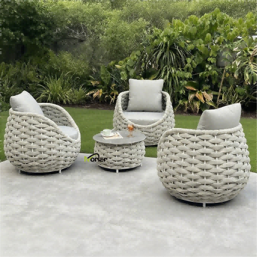 4.โซฟากลางแจ้งแบบมีเชือก: การออกแบบเชือกถักด้วยมือนั้นมีน้ำหนักเบาและระบายอากาศได้ดี และโครงอะลูมิเนียมก็เพิ่มความทันสมัย การผสมผสานความสะดวกสบายเข้ากับศิลปะ จึงเป็นตัวเลือกยอดนิยมในการสร้างระเบียงที่หรูหรา