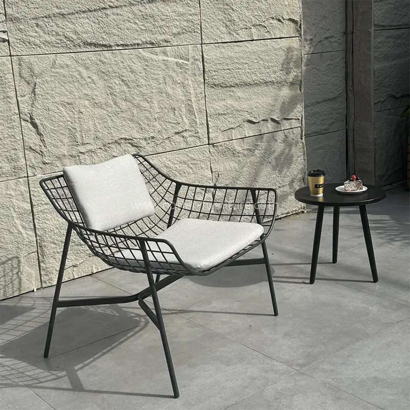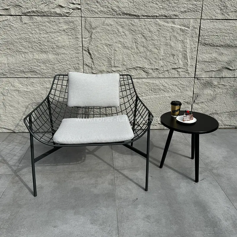 Outdoor Courtyard Black Aluminum Waterproof Cushion Balcony Set